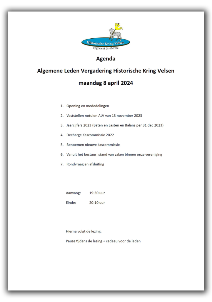 Op maandag 8 april houdt de Historische Kring Velsen haar eerste Algemene Leden Vergadering van 2024.