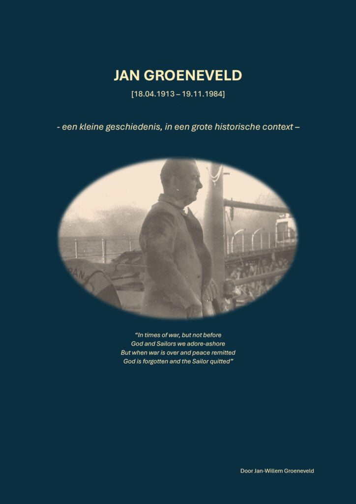 Van Jan-Willem Groeneveld ontvingen wij een boekje in pdf-vorm dat hij heeft geschreven over zijn vader Jan Groeneveld (1913-1984). Jan is als kind met het gezin meegekomen vanuit Vlaardingen naar IJmuiden. De vader van Jan (Willem Groeneveld) was kuipersbaas en zo rond 1920 was er veel werk in die sector in IJmuiden. Toen Jan 16 jaar werd is hij vanuit IJmuiden naar zee getrokken om te gaan varen.