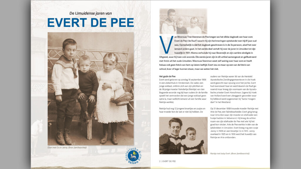 In onze serie digitale artikelen publiceert de Historische Kring Velsen vandaag een artikel getiteld: “De IJmuidense jaren van Evert de Pee”.