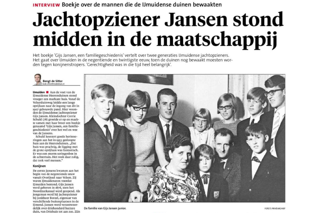 Vandaag woensdag 24 april 2024 verscheen een mooi artikel in de IJmuider Courant / Haarlems Dagblad over ons nieuwe boekje “Gijs Jansen, een familiegeschiedenis”. Mocht u het artikel hebben gemist, hierbij hebben wij het alsnog op onze website gepubliceerd, met toestemming van de journalist van het artikel en Mediahuis.