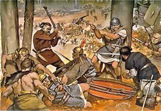 Van de overwonnen Friese bevolking eisten de Romeinen belasting in de vorm van dierenhuiden. De stoere Friezen ergerden zich daar behoorlijk aan en wisten al na een paar decennia de Romeinen uit het gebied te verdrijven, door ze een grote slag toe te brengen.