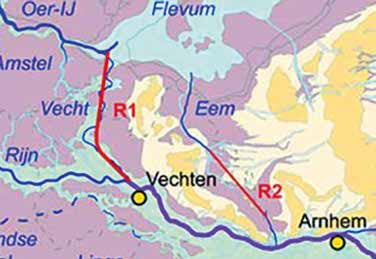 Via de Vecht, die zich splitste op de hoogte waar nu Breukelen ligt en voor een deel via Velsen naar de Noordzee liep – zoals te zien op de bij dit verhaal weergegeven kaart – trokken ze naar het Noorden. Zo werden ze rond het jaar 15 ook de baas in een gebied dat boven de Rijn lag. Bij archeologisch onderzoek, op de plek waar nu de Velser- en Wijkertunnels liggen, zijn immers Romeinse nederzettingen, forten met havens, teruggevonden.