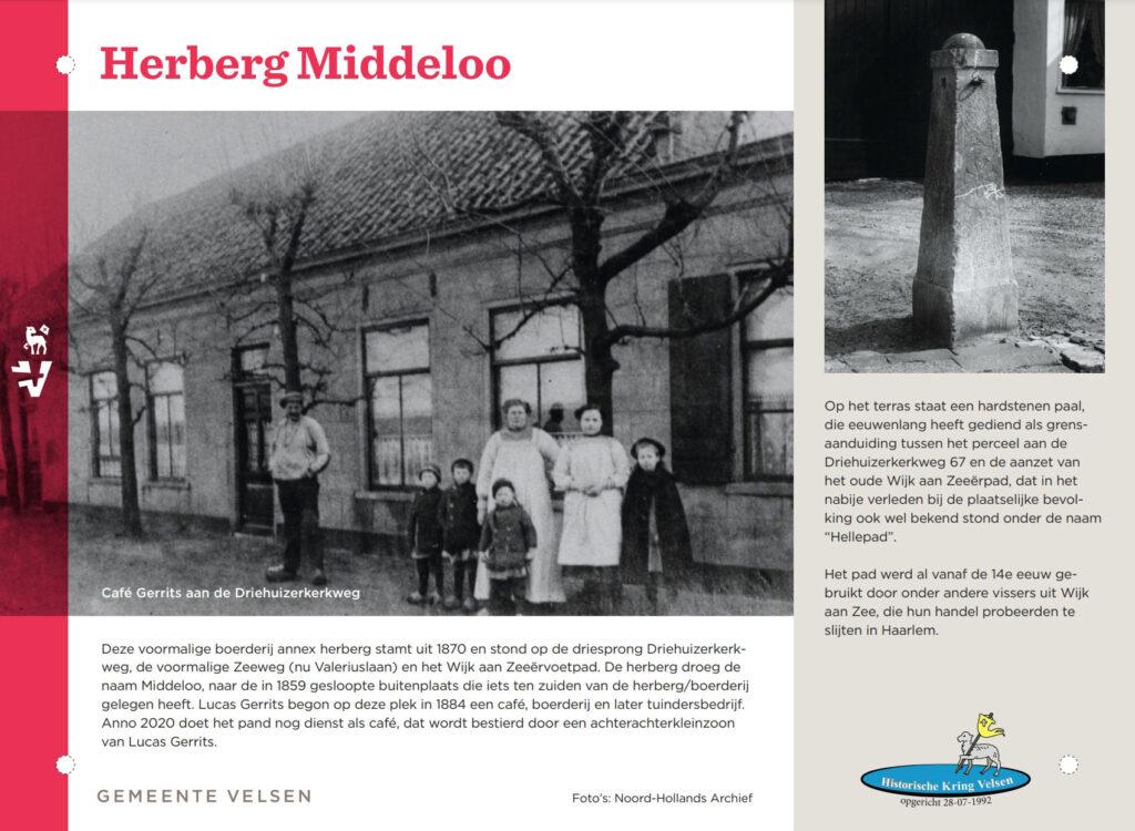 Op 27 november 2020 werd het eerste Historische Informatie Paneel (HIP) nieuwe stijl in gemeente Velsen aan de gevel van Café Middeloo onthuld.