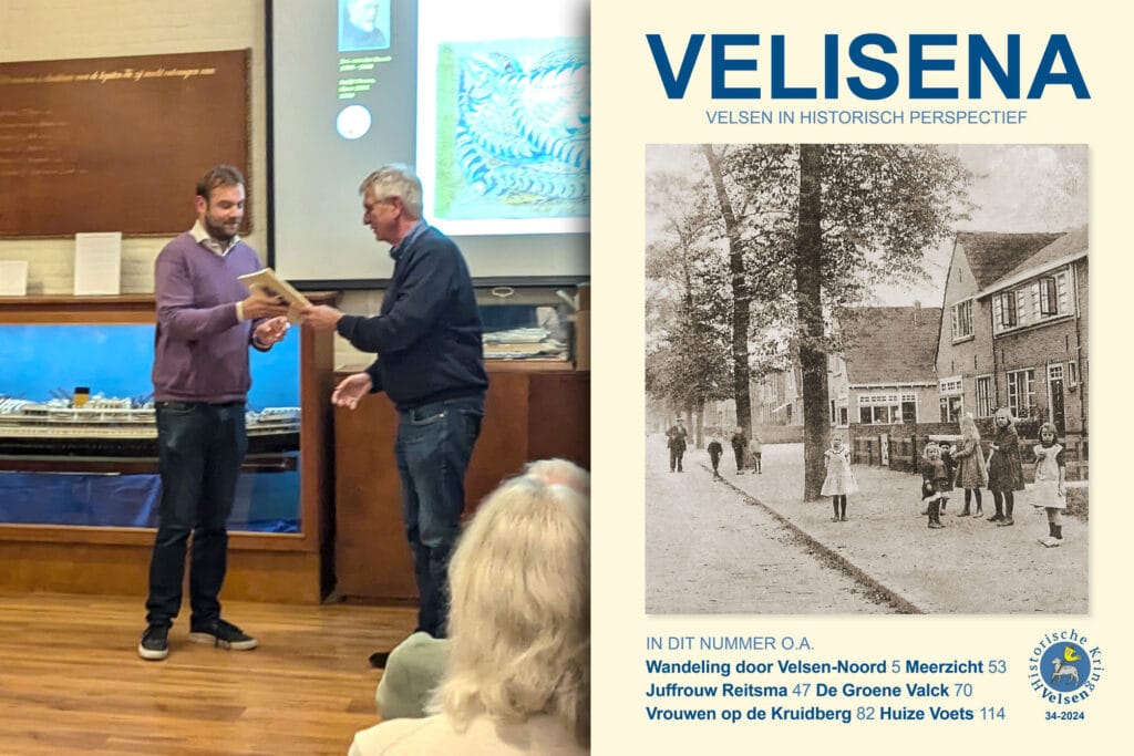 Op maandag 11 november 2024 werd tijdens de ledenavond in het Zee- en Havenmuseum het nieuwe jaarboek Velisena gepresenteerd. Dit jaar is er een extra dikke Velisena uitgebracht (136 pagina’s) met veertien nieuwe artikelen over de rijke historie van Velsen.